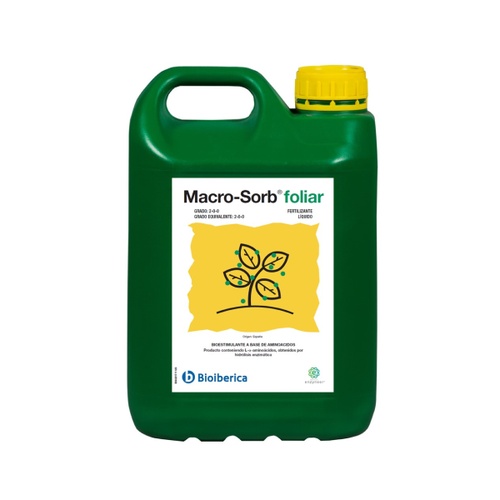 Macro-Sorb® foliar es un producto a base de L-α-aminoácidos obtenidos mediante la exclusiva tecnología Enzyneer. Tiene una alta relación de aminoácidos libres respecto a totales dado su tecnología de hidrólisis enzimática. Se caracteriza por su elevada rapidez de acción y una excelente compatibilidad en mezclas de aplicación foliar.
